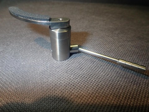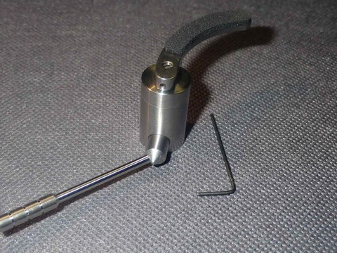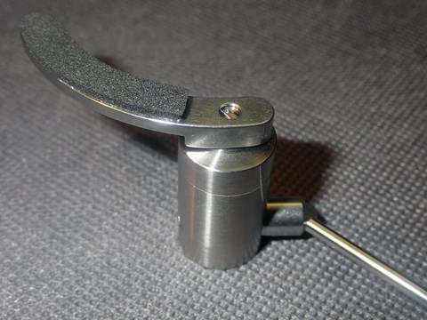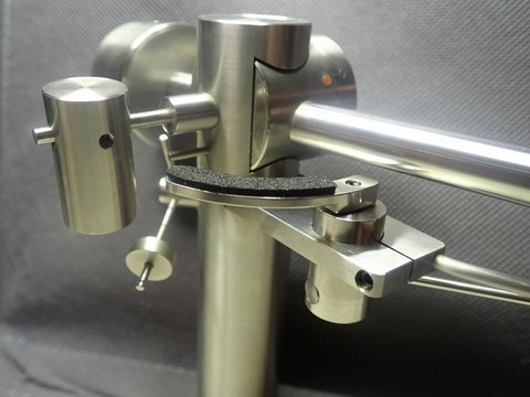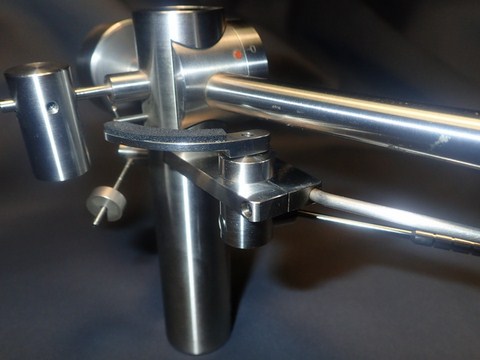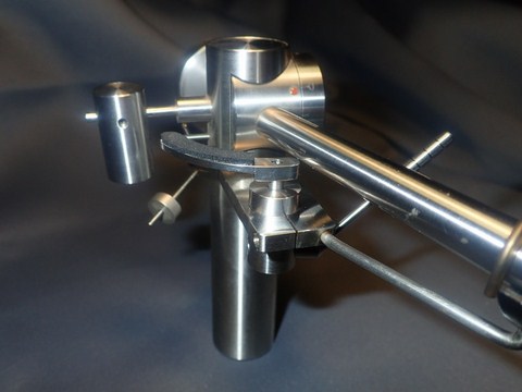 il perno centrale ( pistone centrale ) su cui si fissa archetto ha un foro superiore filettato con vite a taglio piatto , di serie la vite è totalmente avvitata. Allentando leggermente il grano laterale dell' archetto è possibile svitare la vite superiore di 2.5 giri totali per un escursione massima di circa + 1.3 mm. in questo modo è possibile una regolazione fine della dell altezza della canna e quindi della testina rispetto al vinile .