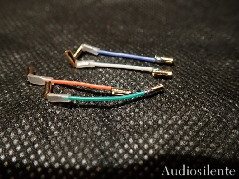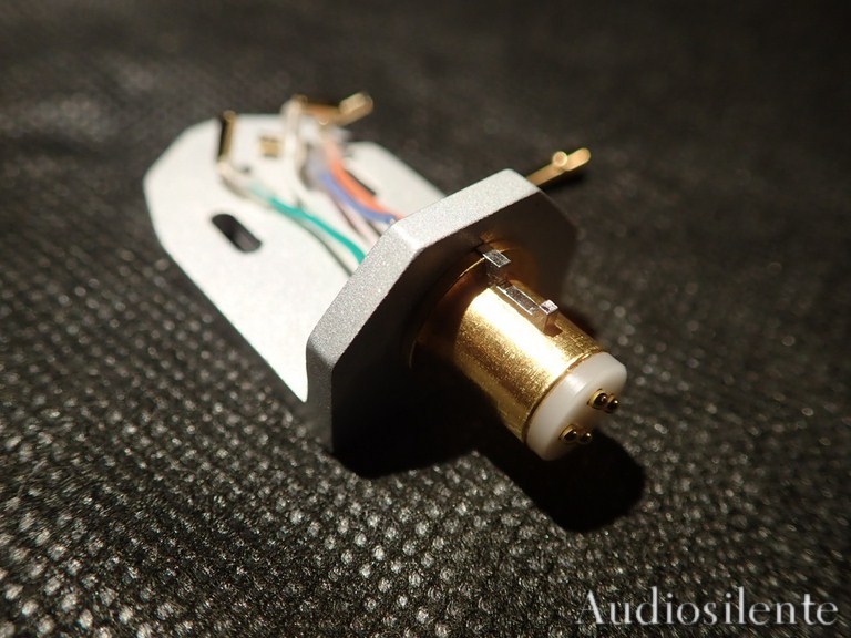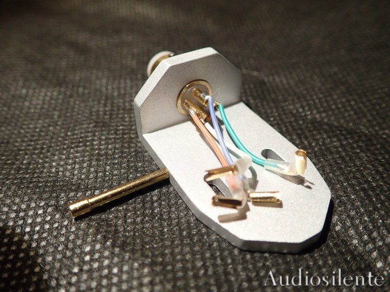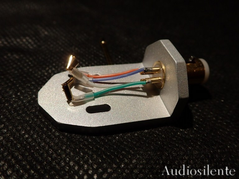 Headshell in alluminio realizzato a controllo numeri, azimut regolabile con chiave a brugola in dotazione, connettore Emt placcato oro, pin placcati oro, chiave del connettore realizzata in acciaio inox e inserita nel connettore con l' uso di microscopio. Fili clips realizzati in rame e argento rivestimento in silicone, clips realizzate in bronzo fosforoso, tutto rigorosamente Made in Italy