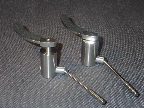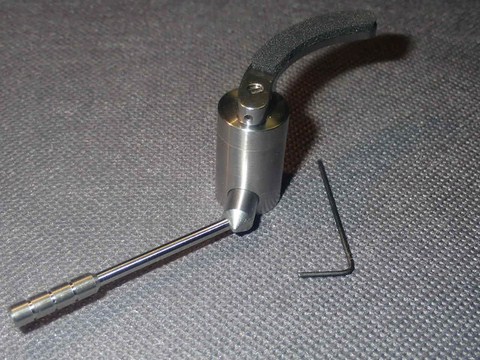 The brass inner central body has 3 threaded holes with relative grub screws, through which it is possible to adjust the height of the stainless steel central pin (central piston), which has a maximum adjustment of +4.5 mm from the standard height (29 mm). This is useful when the arm lift support bracket is far from the arm tube and therefore it is needed an arm lifter with an arm rest positioned higher (+4.5 mm max ) than common arm lifters found on the market.