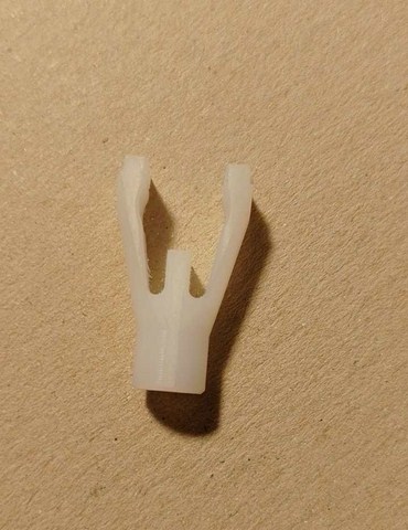 Finalmente disponibile la nuova forcella di tenuta della canna per tutti i bracci Thorens TP 14, BTD 12S, TP 25 e per tutti quei bracci che hanno un diametro della canna di 9.90 mm. Questa forcella è realizzata in delrin fresato dal pieno, solo in questo modo si ha una forcella totalmente elastica e duratura nel tempo. A differenza della produzione con stampanti 3D dove la plastica risulta non elastica e quindi tende a spaccarsi. La forcella si fissa al corpo in alluminio ( non fornito ) a pressione. il diametro del cilindro in alluminio dove si fissa la forcella è di 5.00 mm . Prodotto da Audiosilente