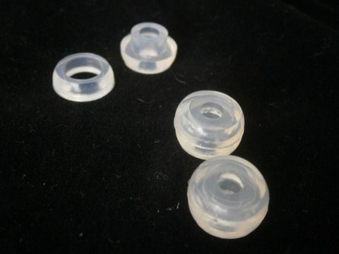 In foto sono mostrati 3 gommini smontati, che sono composti da 2 parti. Nel caso in cui si disponga di un giradischi versione Mk2 occorre acquistare 2 set.