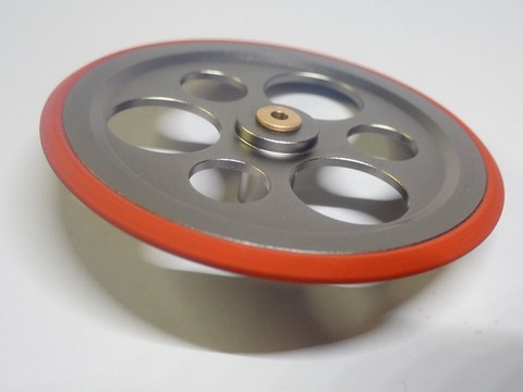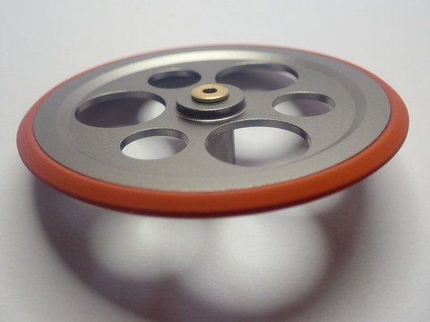 The weight of the idler wheel is only 17 grams. 2 grams more than the original version. The weight is critical because Lenco designed a suspended idler wheel so the interaction between idler wheel weight and spring type determines the amount of noise produced by the idler wheel itself and the turntable. A heavier wheel requires a new, higher tension, spring to exert an even grip on the platter and this causes more noise and more vibrations.