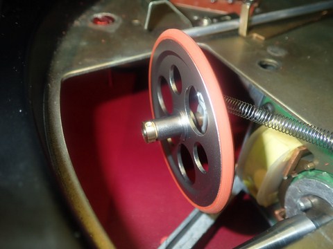 the new idler wheel now mounts 4 sintered bushings, while the original Lenco pulley mounted only 2.