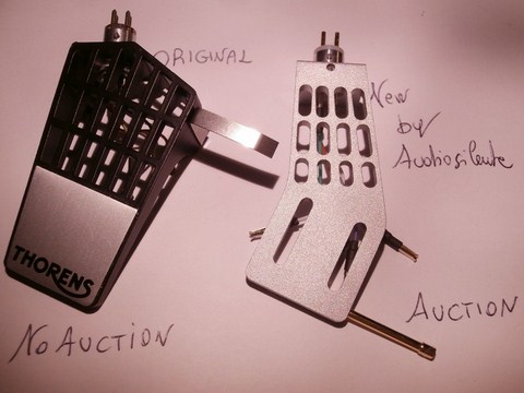 New Thorens TP 16 tonearm compatible shell with Thorens standard connector. It is machined from solid aluminum and sand blasted to obtain the final finish.