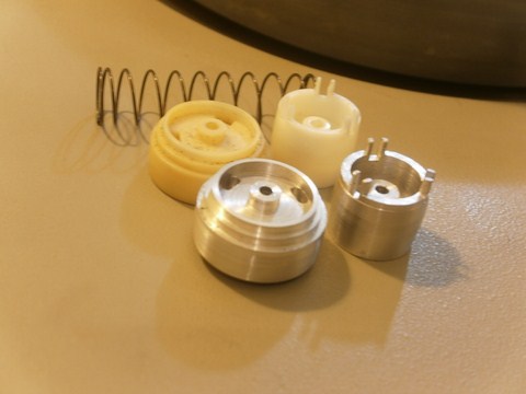 One of the easiest ways to improve the performance of your Thorens TD 160, 165, 166, 145, 146, or 147 is to replace the worn, plastic drive pulley with our precision-machined, four-piece alloy pulley. True to the original Thorens design, our pulley includes the critical, spring-based clutch system. This clutch allows the pulley to slip momentarily at startup until the heavy platter reaches operating speed. This allows the motor to operate at full speed immediately, maximizing torque. More importantly, the clutch reduces startup stress on the motor and belt. Simpler, one-piece replacement pulleys eliminate the performance and safety benefits of the clutch system entirely. Our alloy design also utilizes a self-lubricating phosphorus bronze bushing in place of the original plastic.