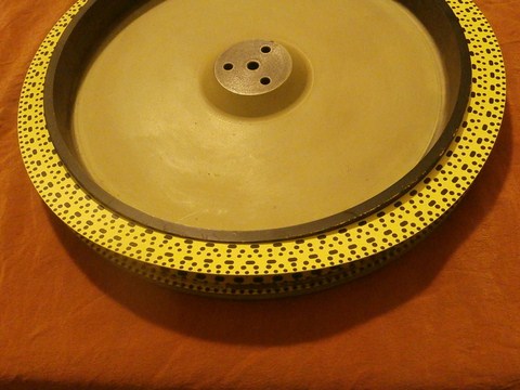 This self centering adhesive disc with 50/60 Hz strobe pattern can be attached directly over the rim of the TD 124 green magnetic platter in case the paint of the strobe rim is damaged or is fading away. Overall thickness is 0.7 mm. We use high quality 3M adhesive.