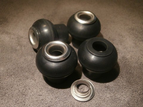 Set of four rubber decoupling mushrooms for Thorens Td124 mk1 and mk2, Td121, Td 184, Td 135 mk1 mk2 made of the same rubber mix as the original decouplers. The set includes four inox steel tops.