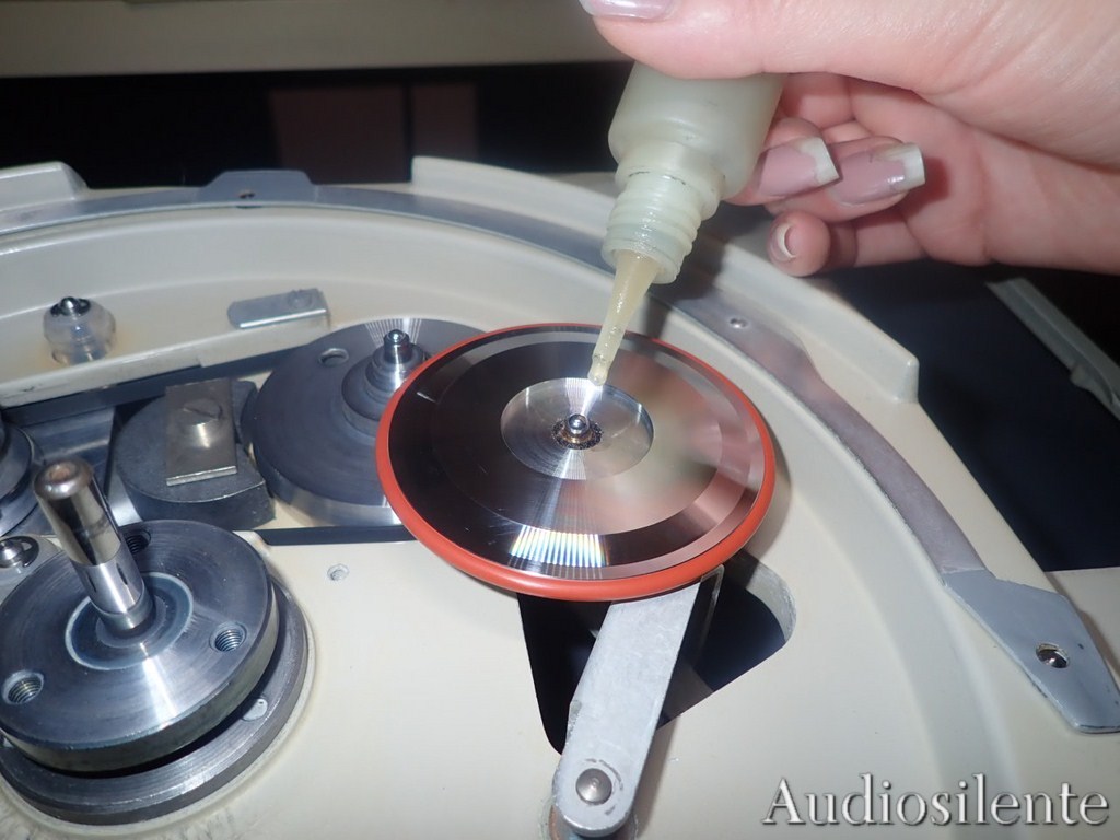 It is therefore sufficient to periodically (every 6 months or when needed) load the felt pad (which is supplied without oil) with 2 or 3 drops of oil (synthetic oil, not mineral oil, with a density of 0W-15W is recommended) to ensure constant and long-lasting lubrication. Please note that a lack of oil will eventually cause wear of the bushing and lower the turntable's performance.