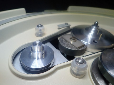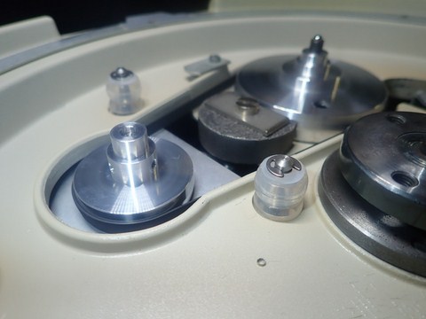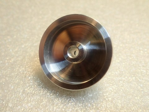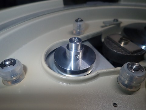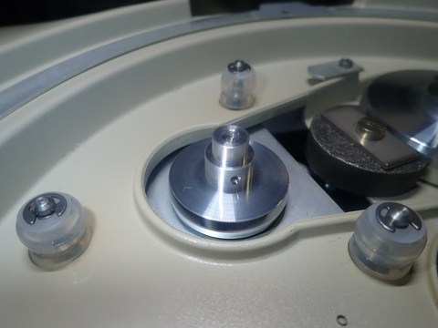 The shape of the adapter at the bottom follows the curvature that occurs inside the center of the aluminum top platter. The bushing is made of brass and ensures smooth operation with the correct tolerance.