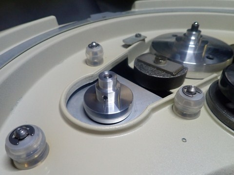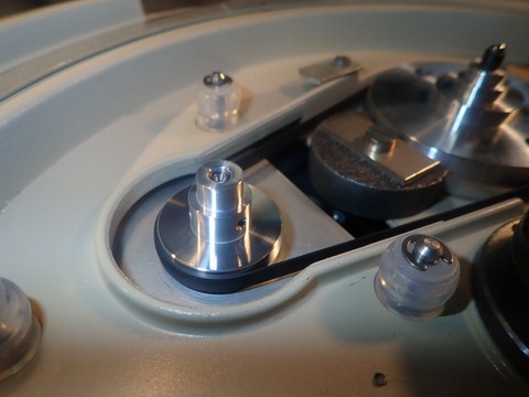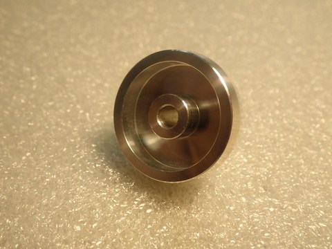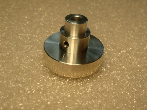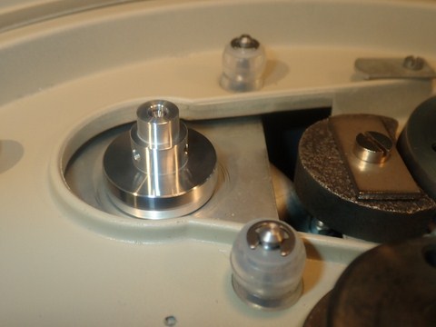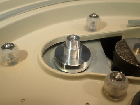 The shape of the adapter at the bottom follows the curvature that occurs inside the center of the aluminum top platter. The bushing is made of brass and ensures smooth operation with the correct tolerance.