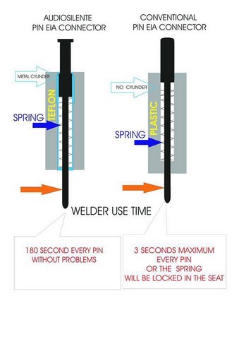 PLEASE NOTE THAT IN OUR CONNECTORS IT IS POSSIBLE TO SOLDER WIRES ONLY, IT IS NOT POSSIBLE TO USE CLIPS. ON REQUEST IT IS POSSIBLE TO SUPPLY THE CONNECTOR WITH EXCELLENT QUALITY WIRES ALREADY SOLDERED. Designed and manufactured in Italy by Audiosilente.